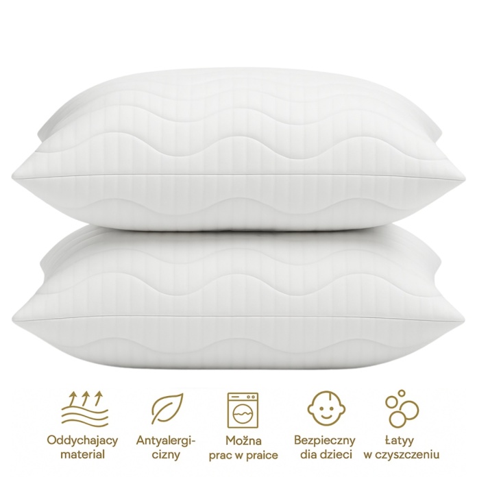Każda poduszka jest starannie zapakowana w higieniczny, foliowy worek który zgrzany jest pod zgrzewarką aby poduszki dotarły do Ciebie czyste, świeże i pachnące nowością.